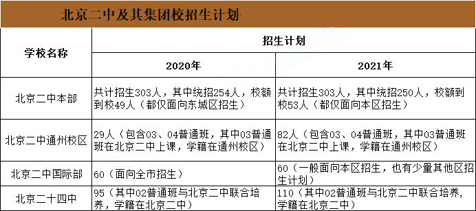 3、北京二中国际部近2年招生计划没有发生变化,不过需要注意的是2021年国际班属于统招批次,且需将志愿填报在统招批次,2021年国际班一般面向本区招生,也有少量的其他区招生计划,详见2021年中招简章。