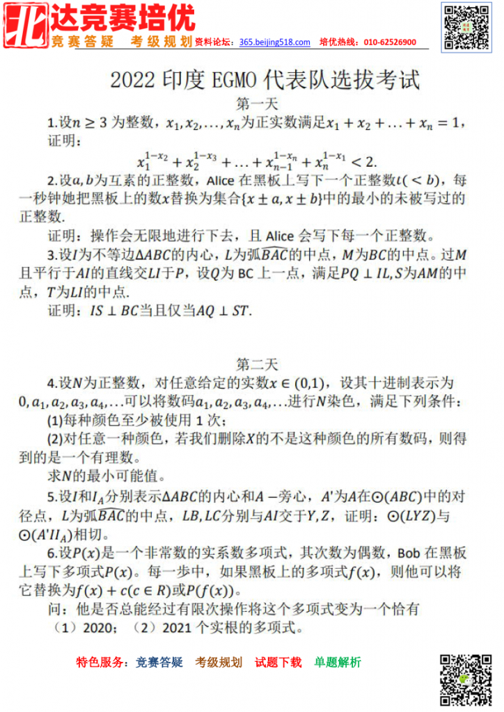 2022印度EGMO女奥代表队选拔考试试题。admw360中考复读学校教研组收集整理,分享给大家。