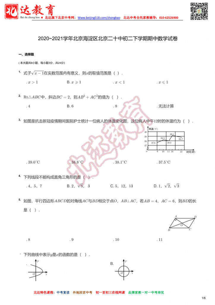 北京二十中2021初二下期中数学试题含标答。admw360中考复读学校教研组收集整理,分享给大家。