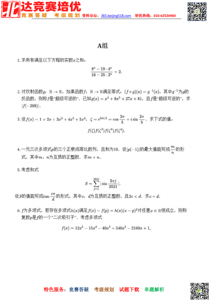 2021年普林斯顿数学竞赛代数组(中文版)。admw360中考复读学校教研组收集整理,分享给大家。