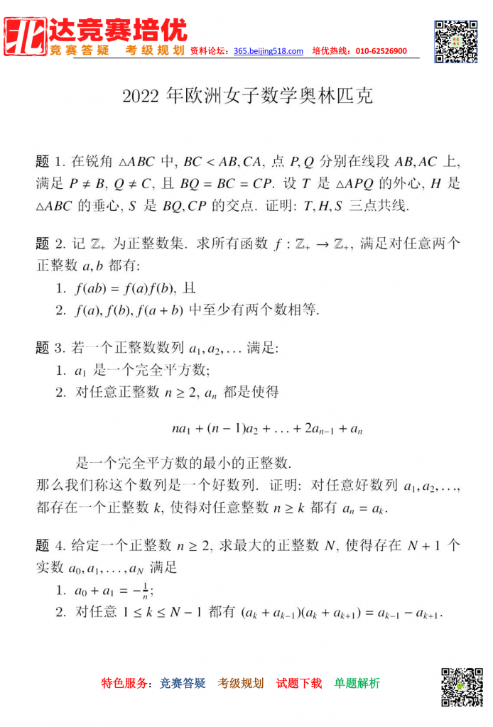2022年欧洲女子数学奥赛试题及简答。admw360中考复读学校教研组收集整理,分享给大家。