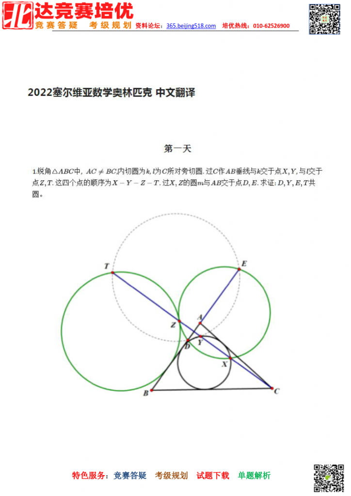 2022塞尔维亚数学奥赛试题(中文版)。admw360中考复读学校教研组收集整理,分享给大家。