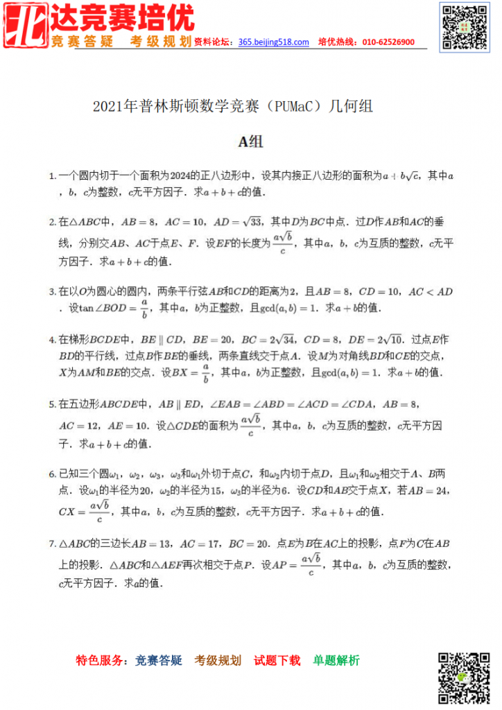 2021年普林斯顿数学竞赛(PUMaC)几何组试题(中文版)。admw360中考复读学校教研组收集整理,分享给大家。