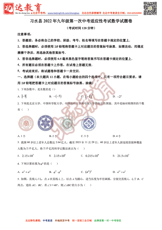 2022年贵州省习水县中考一模试题及解析(高清版)