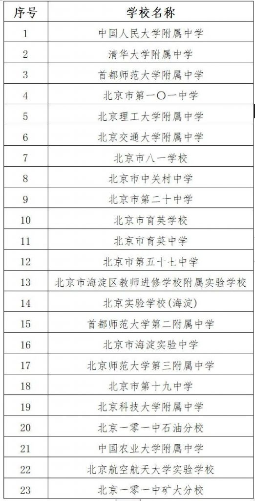 海淀区共计有23所招生资格的学校,如下图,其中有3所学校面向全市区招生。