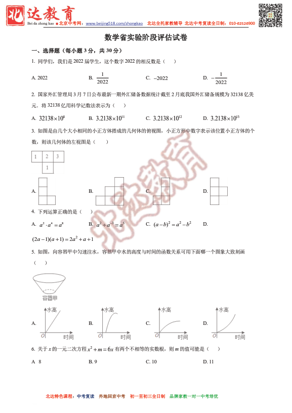 2022年全国部分省市中考一模试题及解析(随时更新)