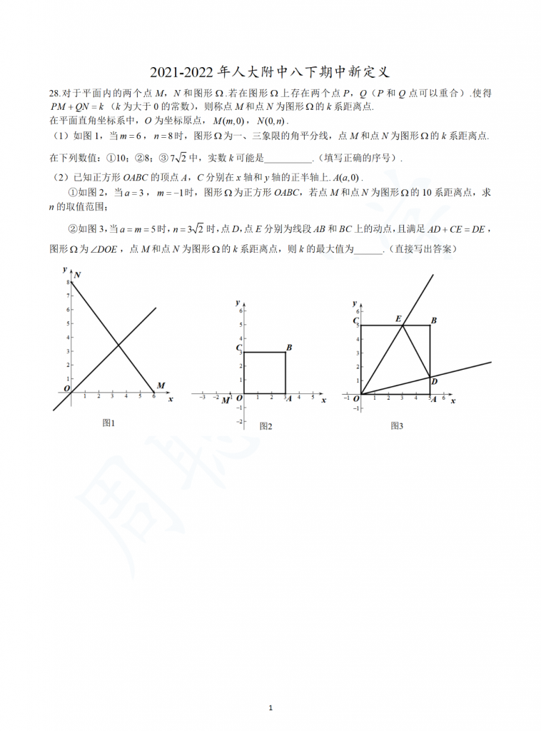 北京人大附中2022年初二下期中数学新定义图解!admw360中考复读学校教研组收集整理,分享给大家。