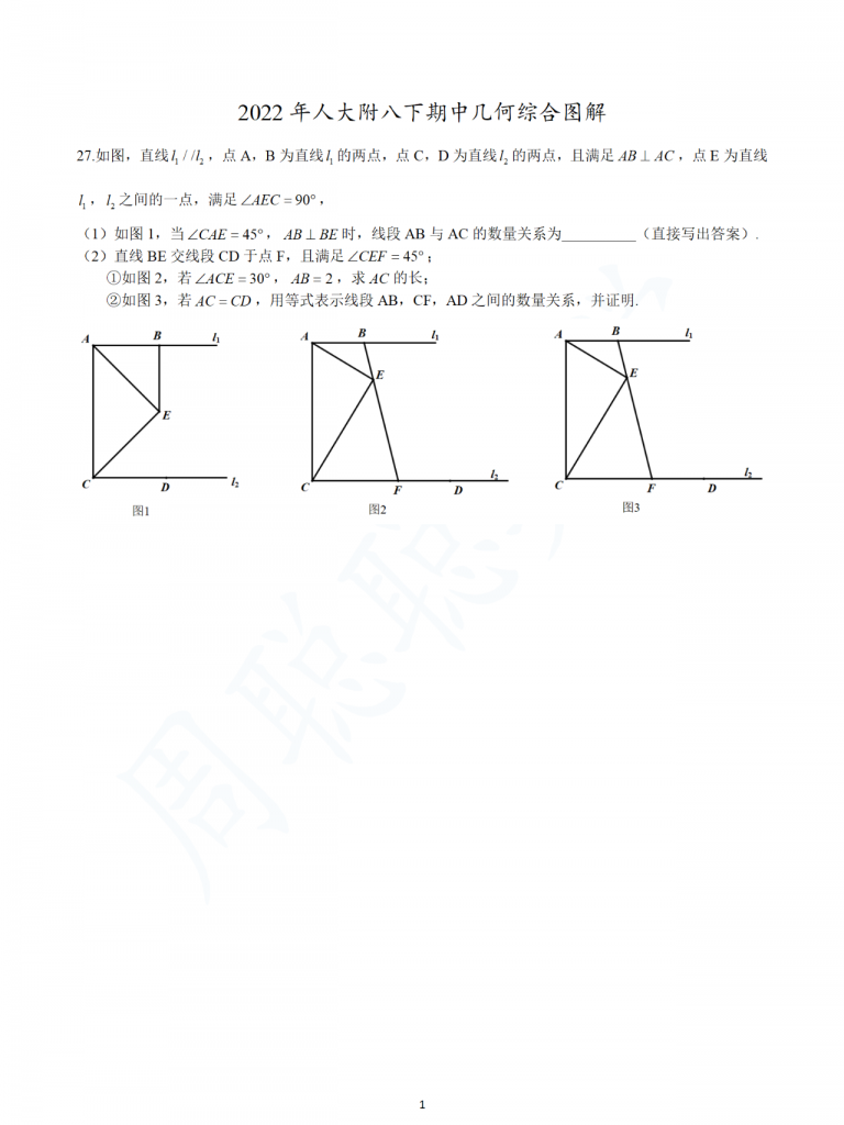 北京人大附中及北大附中2022初二下期中几何综合图解!admw360中考复读学校教研组收集整理,分享给大家。