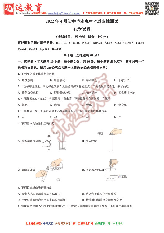 2022年甘肃省兰州市中考一模试题及答案(高清版)