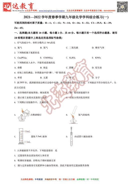 2022年甘肃省兰州市中考一模试题及答案(高清版)