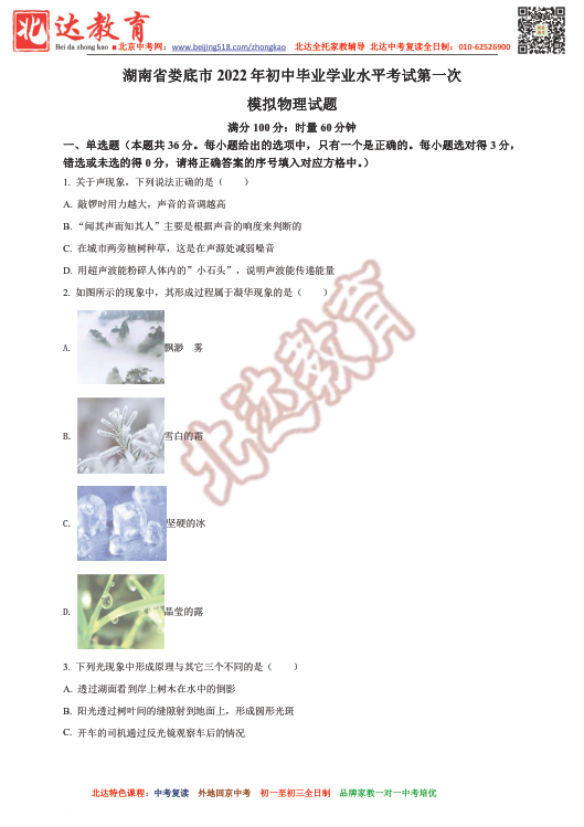2022年湖南省娄底市中考一模试题及解析汇总(高清版)。admw360教研组收集整理,分享给大家。