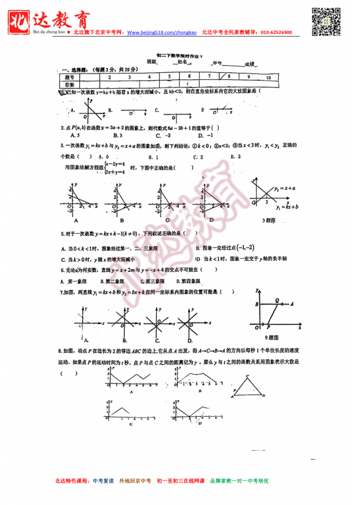 北京人大附中朝阳分校2022初二下数学限时作业(图片版5份)。admw360中考复读学校教研组收集整理,分享给大家。