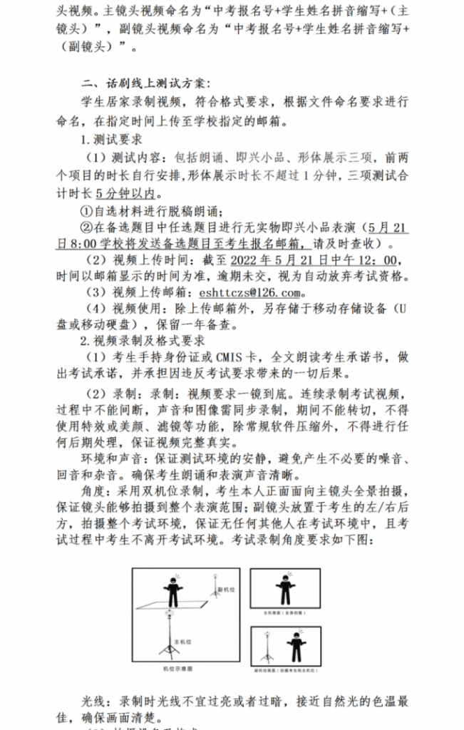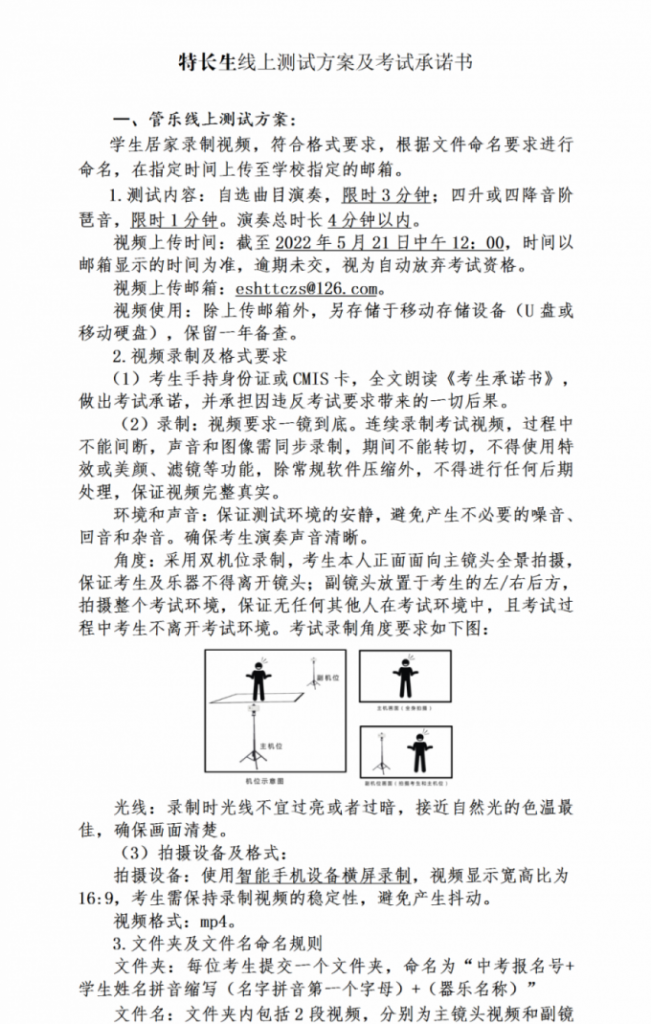 4. 测试方式:学生提交视频,由专家线下打分。视频录制方式见附件2。