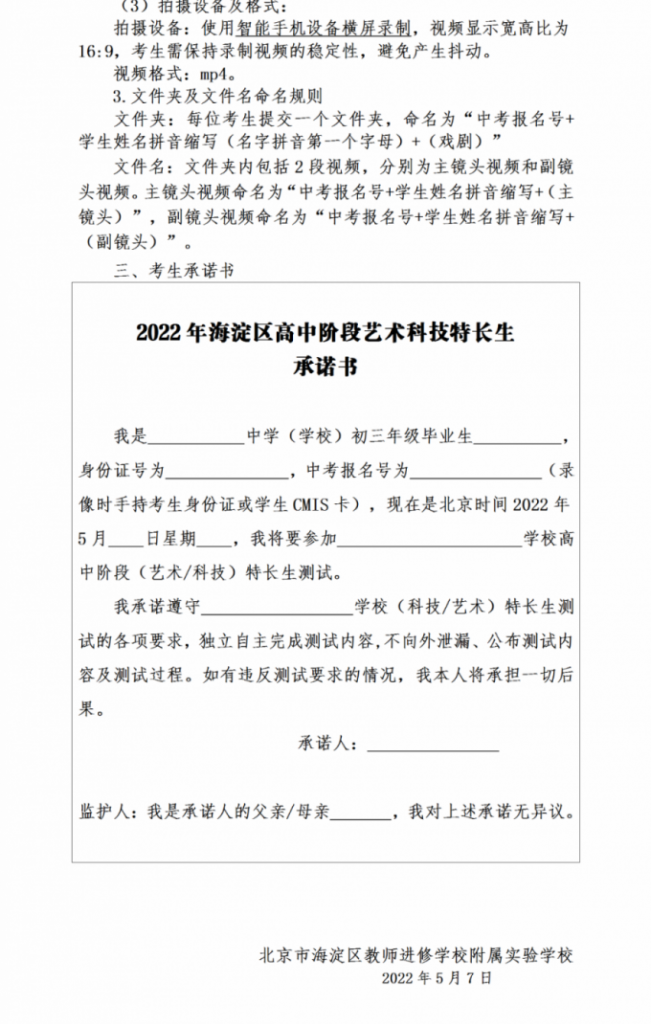 北京海淀进修实验学校2022中考艺术特长生招生简章出炉!admw360中考复读学校教研组收集整理,分享给大家。