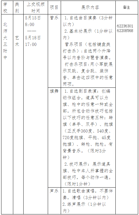 5、5月22日学校在北京师范大学第三附属中学网站www.hd123z.bjedu.cn公示学校专业测试合格名单。