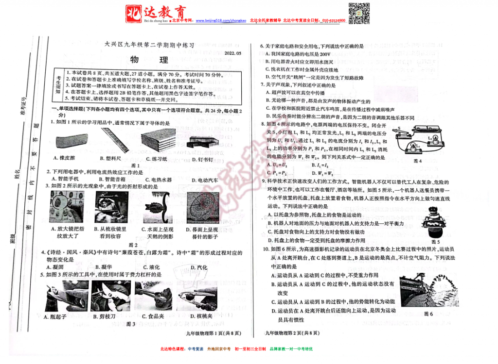 北京大兴2022初三一模物理试题(图片版)。admw360中考复读学校教研组收集整理,分享给大家。