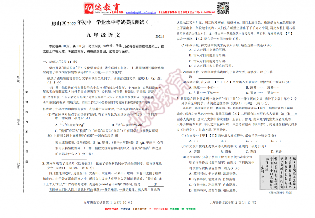 北京房山2022初三一模语文试题及答案(高清版)。admw360中考复读学校教研组收集整理,分享给大家。