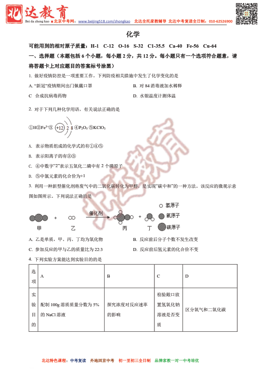 2021南昌初三一模全科真题及答案汇总