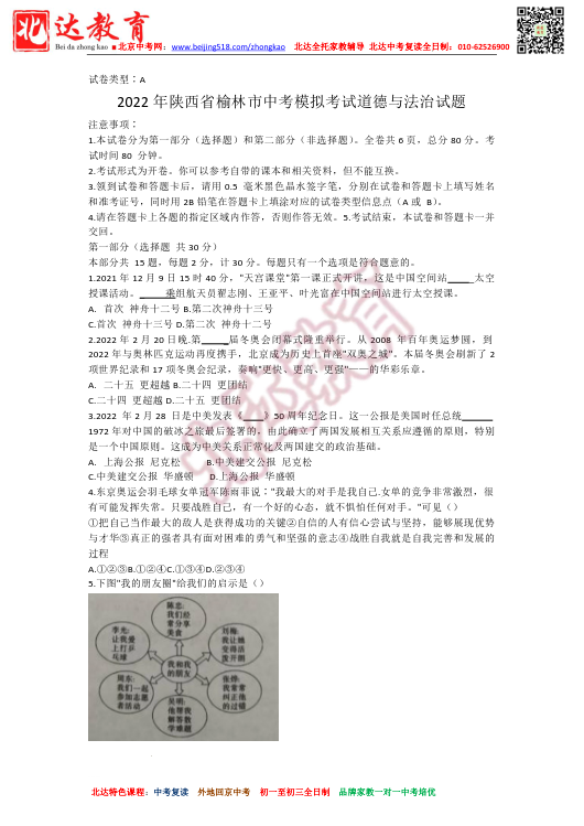 2022年陕西中考一模道德与法治试题及解析汇总。admw360教研组收集整理,分享给大家。