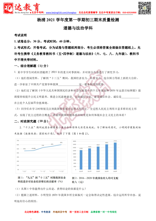 2022年上海市金山区中考一模道德与法治试题(图)