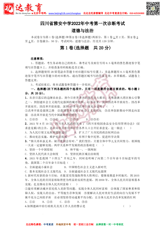 2022年四川中考一模道德与法治试题及解析汇总。admw360教研组收集整理,分享给大家。