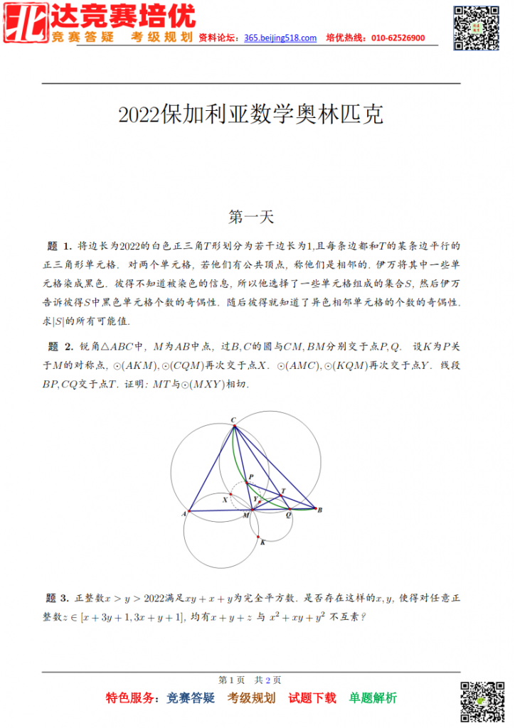 2022保加利亚数学奥林匹克试题(中文版高清版)。admw360中考复读学校教研组收集整理,分享给大家。