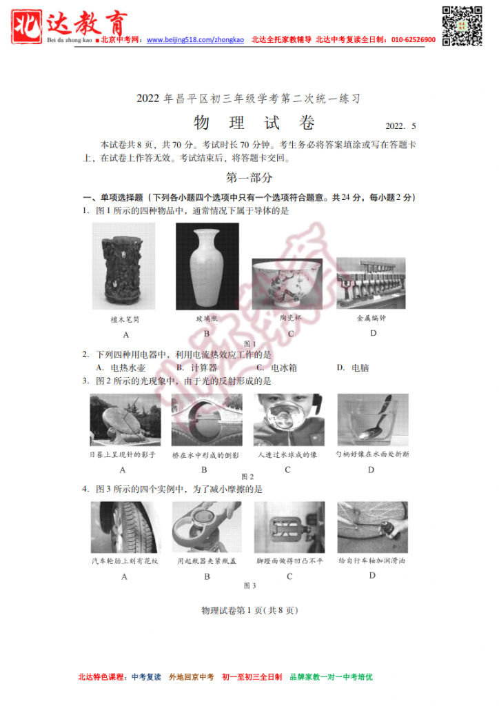 北京昌平2022初三二模物理试卷(高清版无答案)!admw360中考复读学校教研组收集整理,分享给大家。