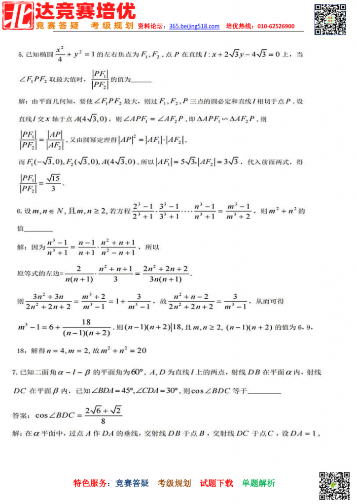 2022年全国中学生数学奥赛新疆赛区预选试题和解答(图片版)。admw360中考复读学校教研组收集整理,分享给大家。