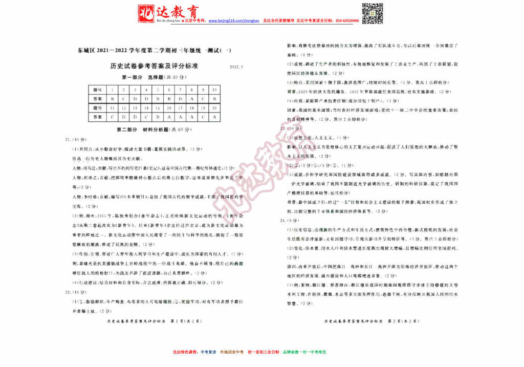北京东城2022初三一模历史答案(高清版)。admw360中考复读学校教研组收集整理,分享给大家。