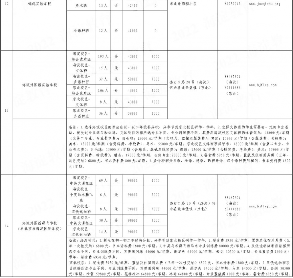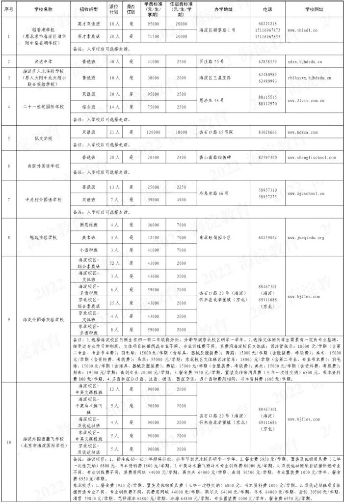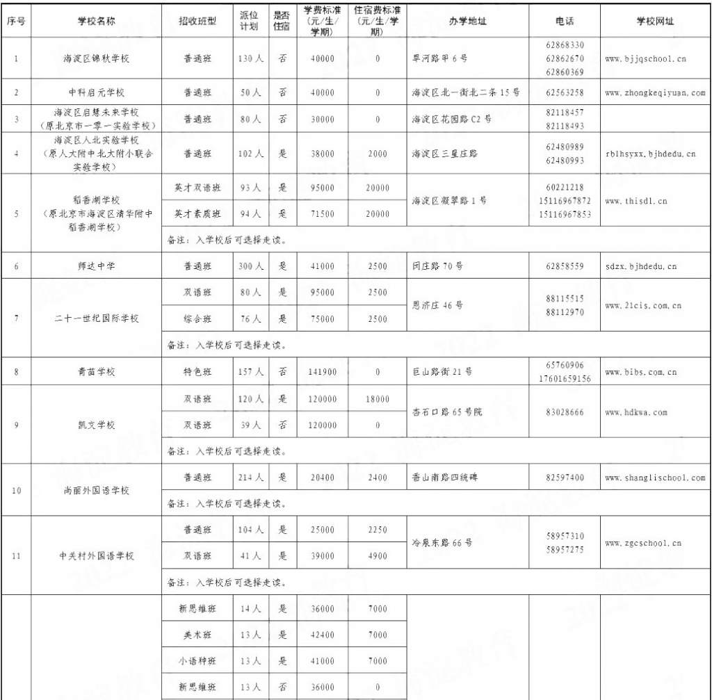 海淀区2022年民办初中学校招生计划表(海淀区)