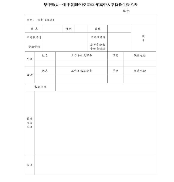 2022年华师一附中朝阳学校中考棒球特长生招生简章