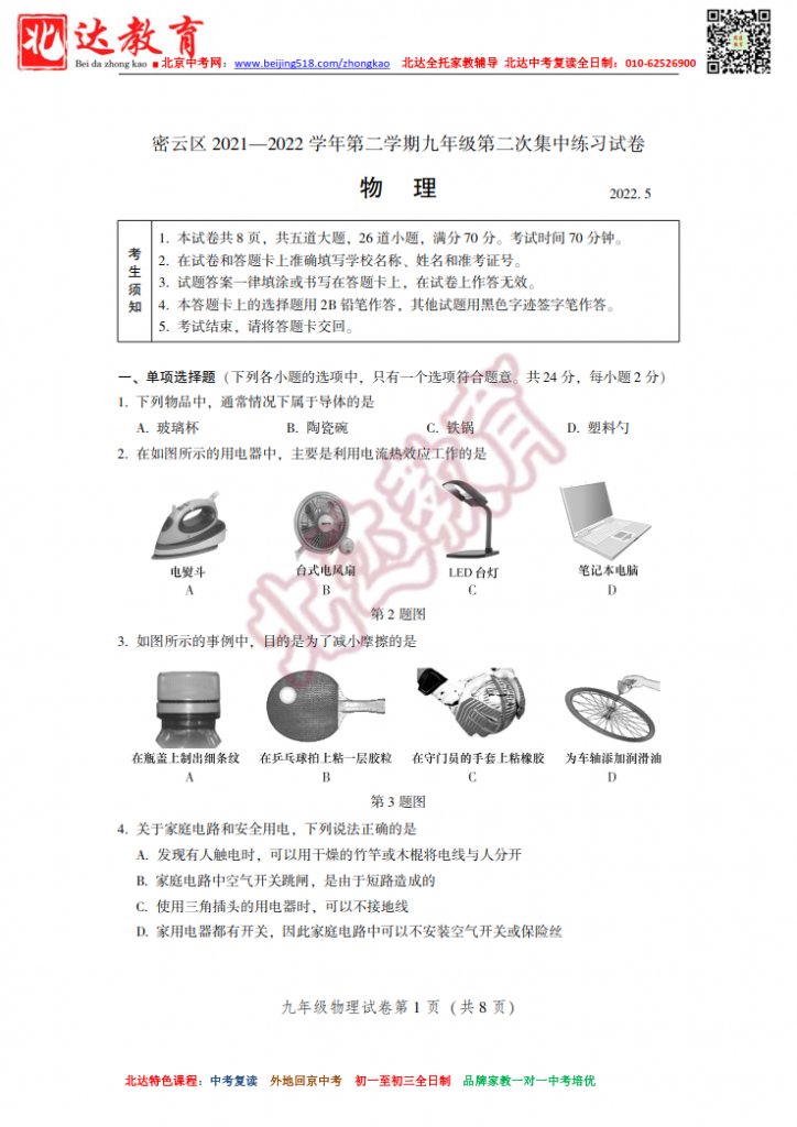 北京密云2022初三二模物理试卷及答案(高清版)!admw360中考复读学校教研组收集整理,分享给大家。