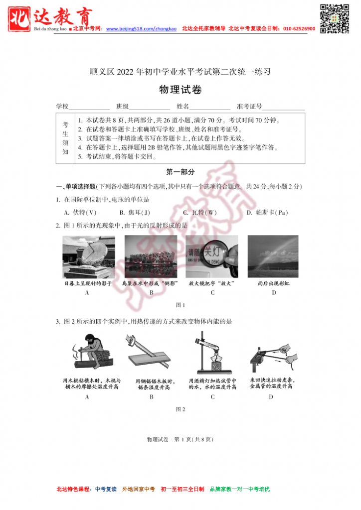 北京顺义2022初三二模物理试题(高清版)!admw360中考复读学校教研组收集整理,分享给大家。