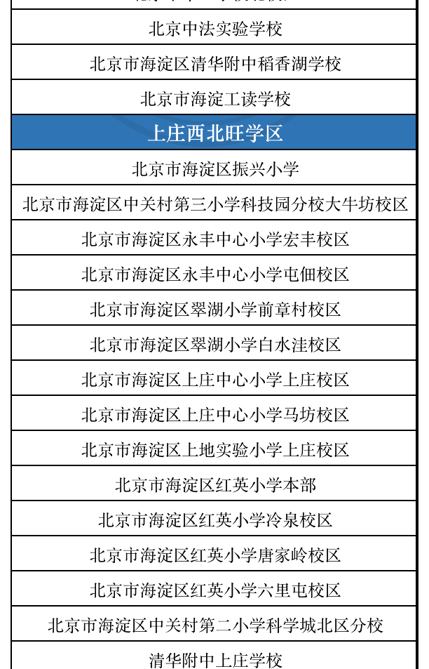 | 16 | 上庄西北旺学区 | 50981545 | 永泽北路6号 |