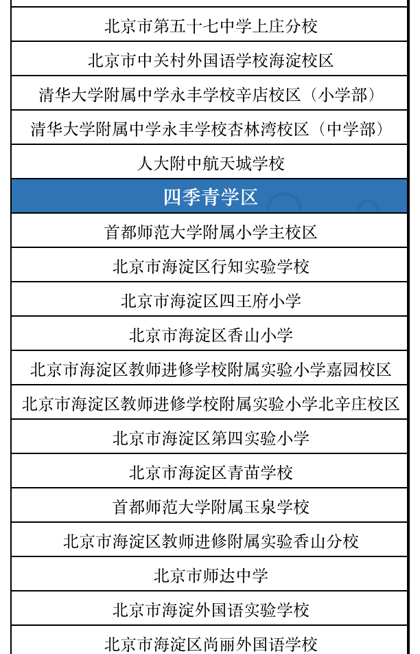 区域五:西三旗学区、清河学区、青龙桥学区、上地学区、上庄西北旺学区、温泉苏坨学区。