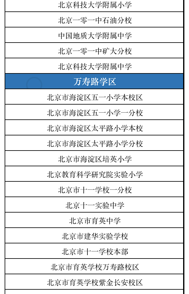 | 10 | 万寿路学区 | 88625882 | 永定路127号 |