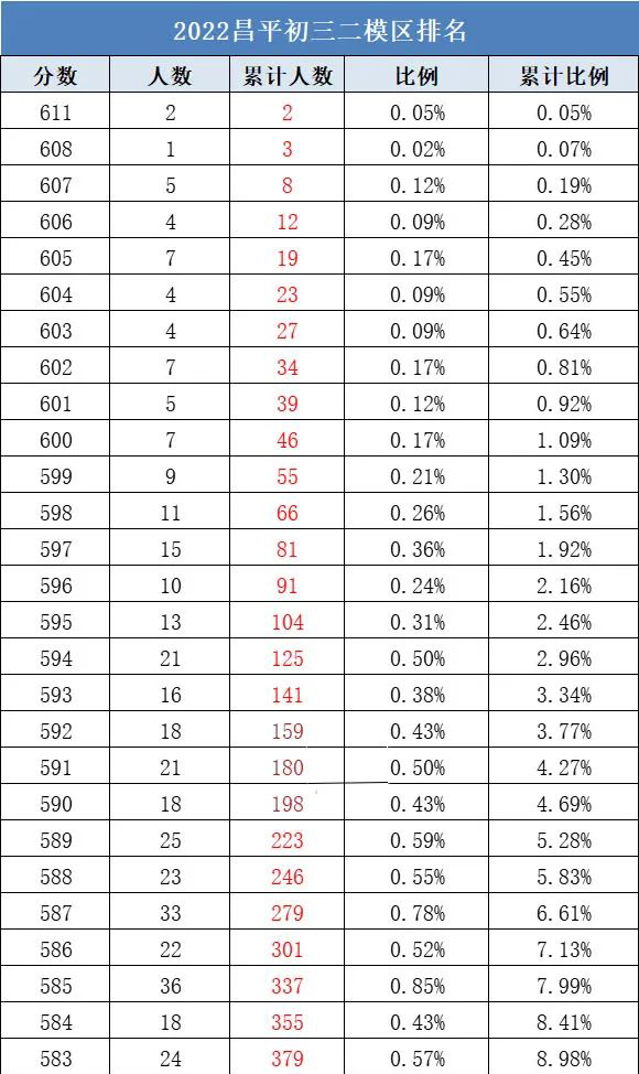 重磅!北京昌平2022初三二模五分段区排名出炉! admw360中考复读学校教研组收集整理,分享给大家。