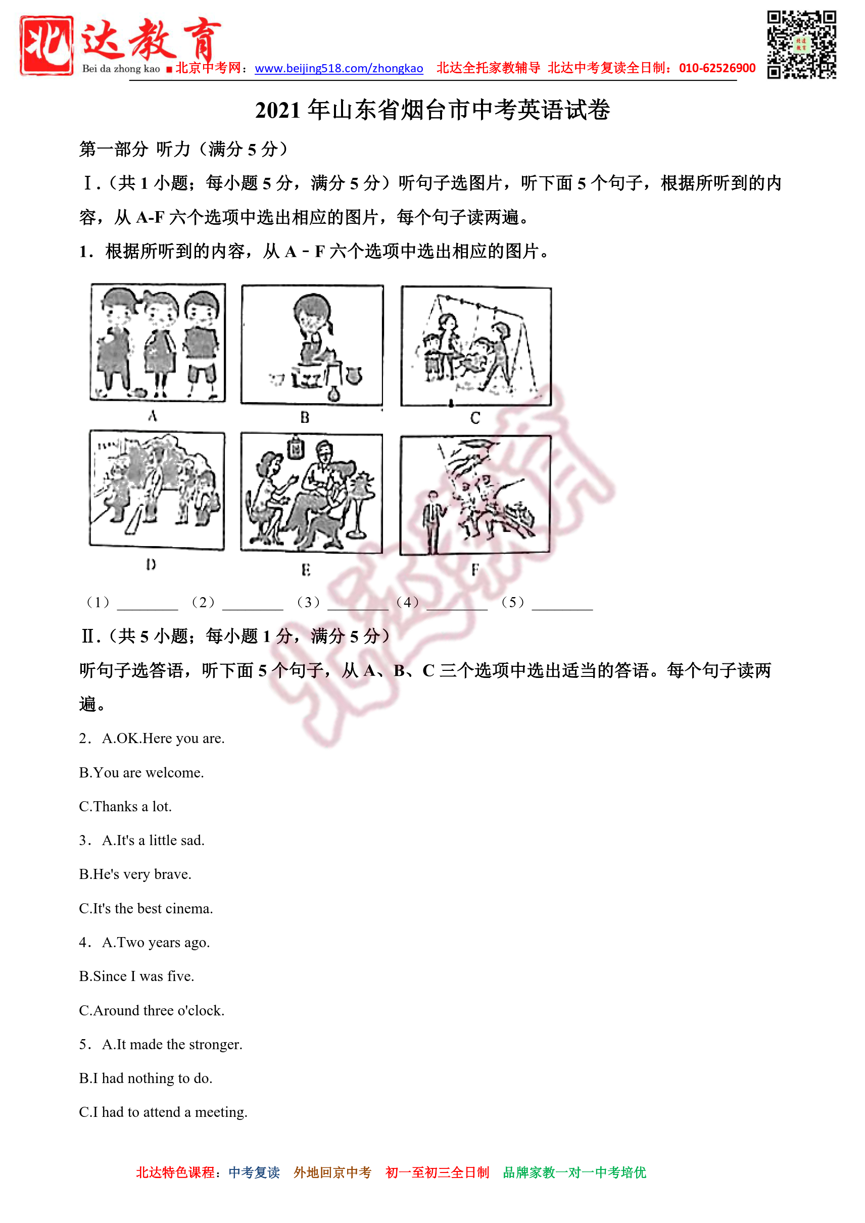 2021年山东中考英语试题及答案汇总。admw360教研组收集整理,分享给大家。