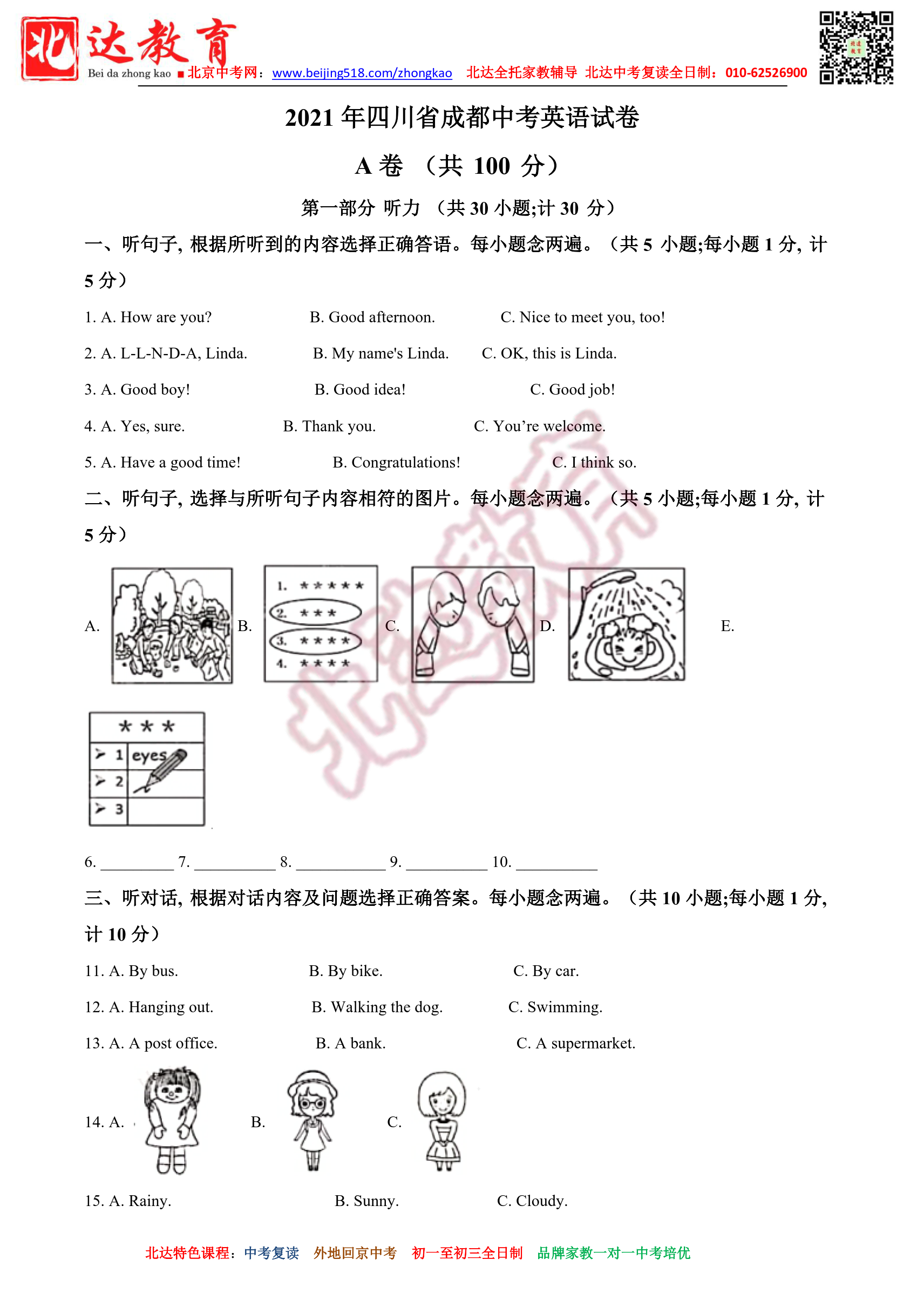 2021年四川中考英语试题及答案汇总。admw360教研组收集整理,分享给大家。
