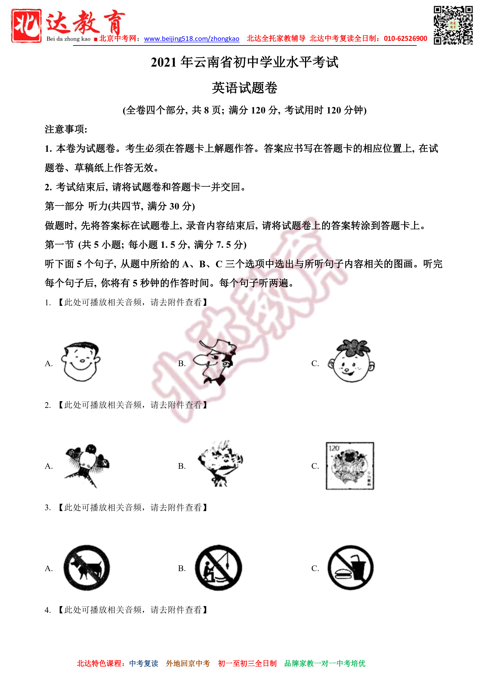 2021年云南中考英语试题及答案汇总。admw360教研组收集整理,分享给大家。