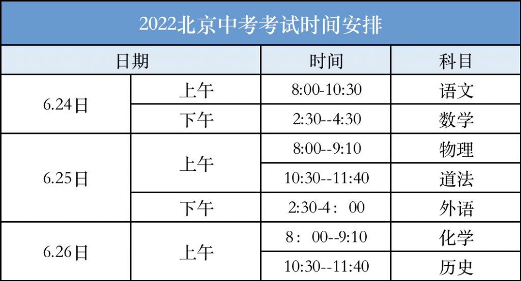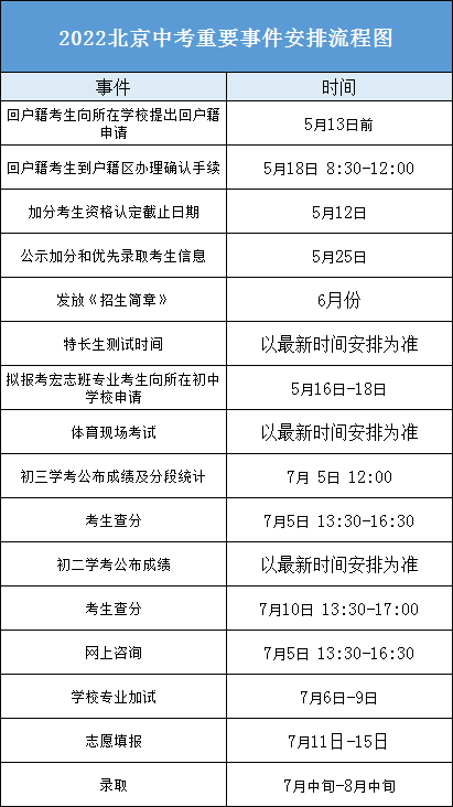 根据2022北京中招日程安排表: