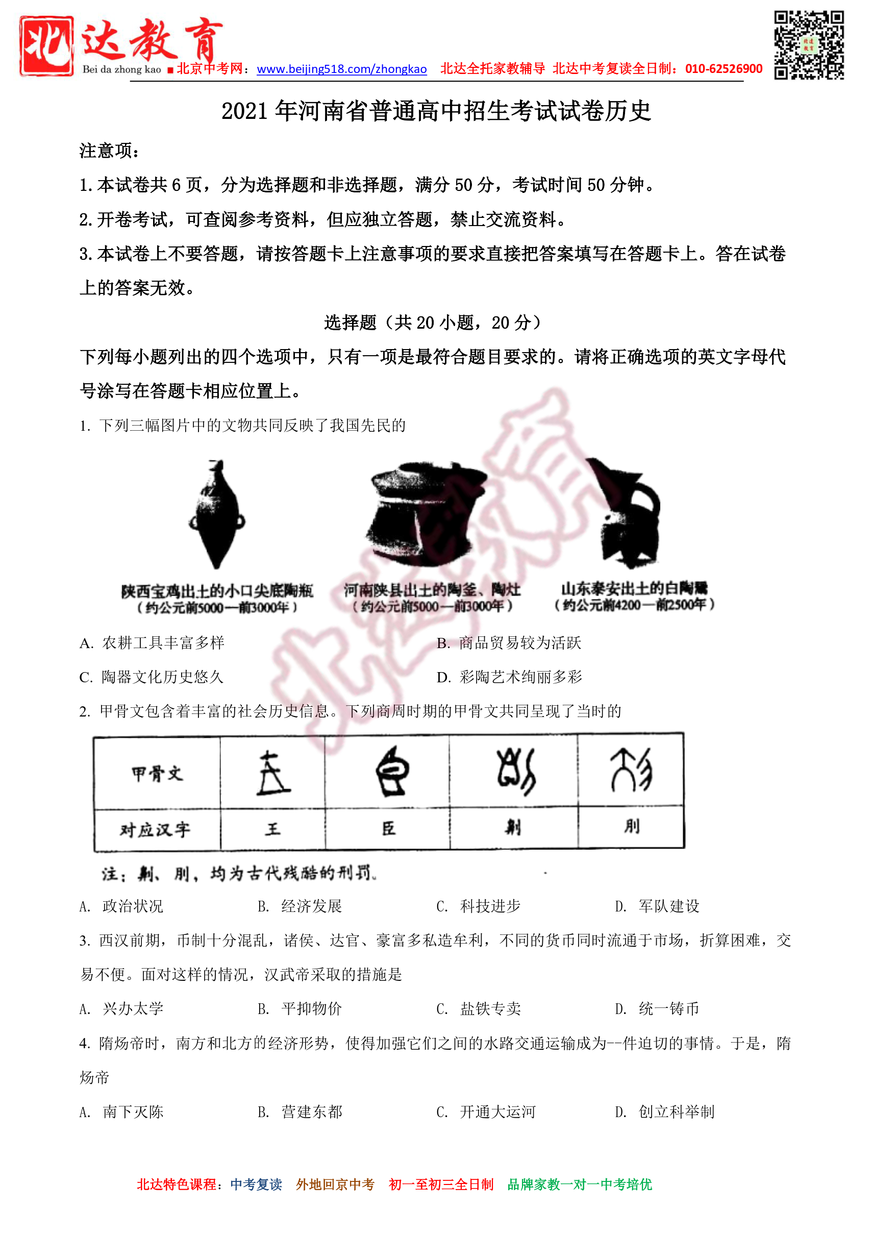 2021年河南中考历史试题及答案汇总。admw360教研组收集整理,分享给大家。