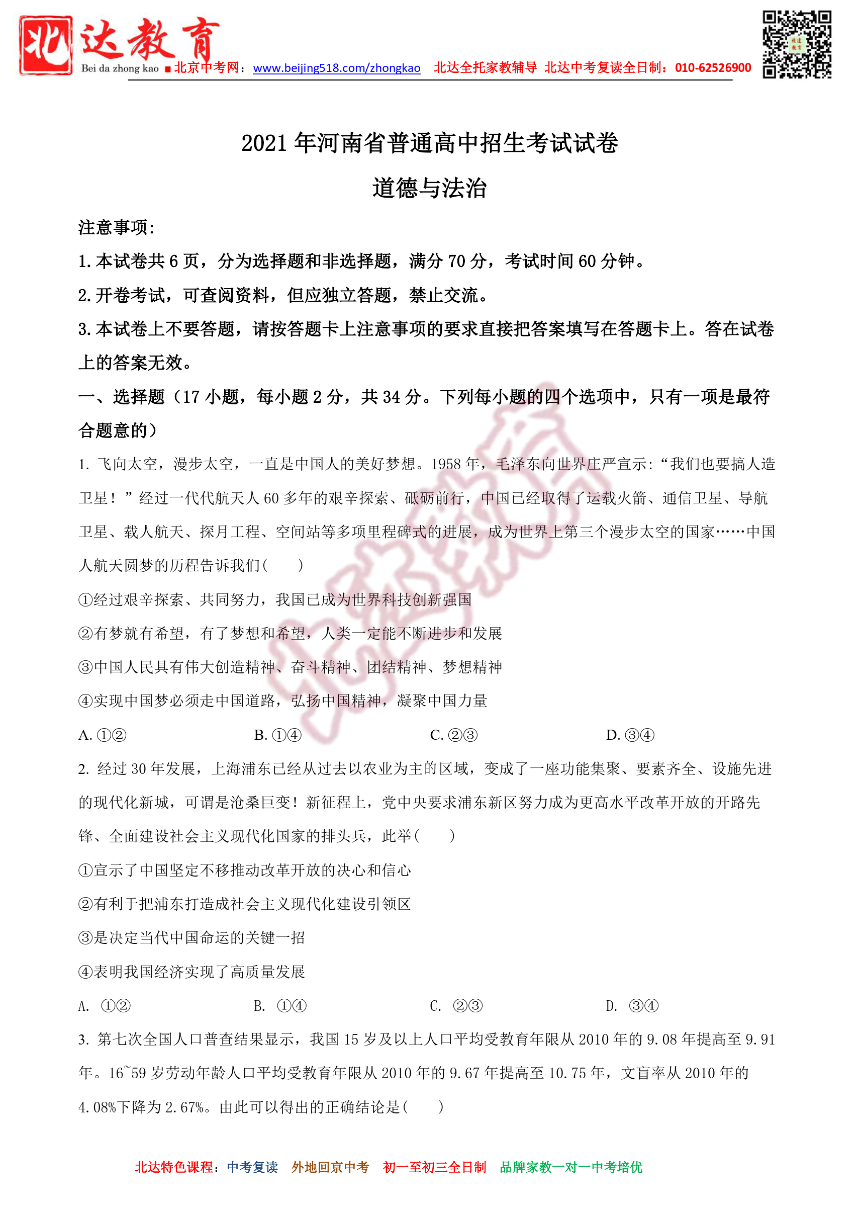 2021年河南中考政治试题及答案汇总。admw360教研组收集整理,分享给大家。