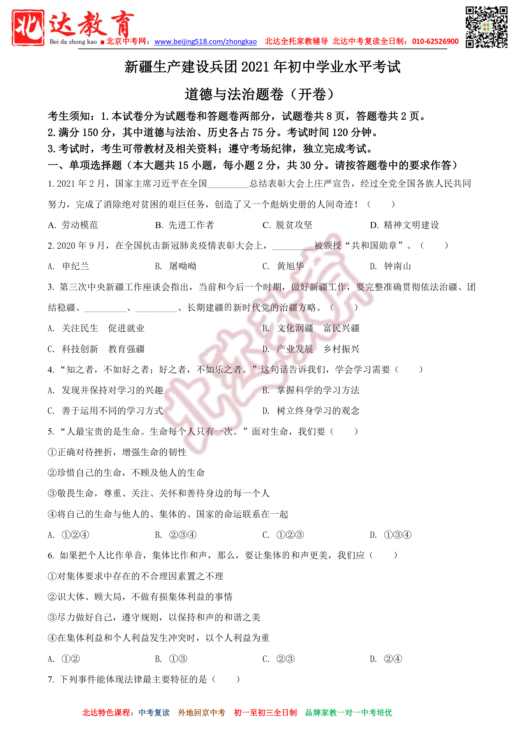 2021年新疆中考政治试题及答案汇总。admw360教研组收集整理,分享给大家。