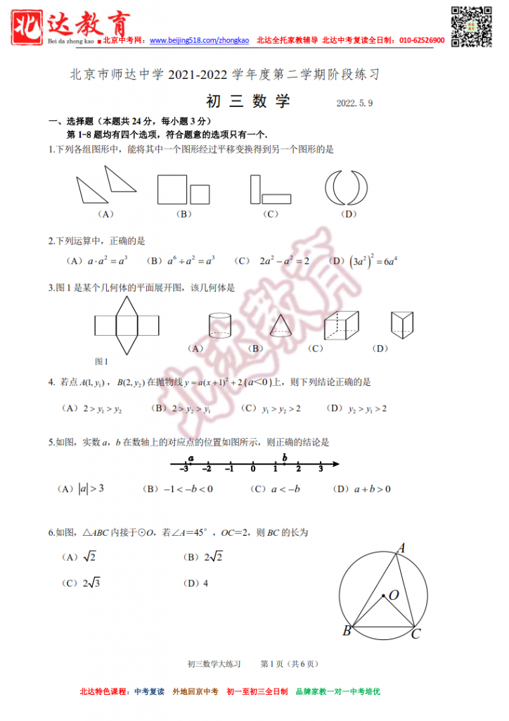 北京师达中学2022初三下数学阶段练习(高清版)。admw360中考复读学校教研组收集整理,分享给大家。