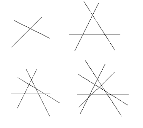 所以n条直线相交交点个数最多为:n(n-1)÷2