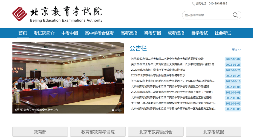 考生可登录北京教育考试院网站(www.bjeea.cn)查询初三年级的语文、数学、外语(含听力口语成绩)、物理、道德与法治、化学、历史成绩,查询及录取部分分段统计公布时间为7月5日12:00。自主招生考生成绩显示合格/不合格。