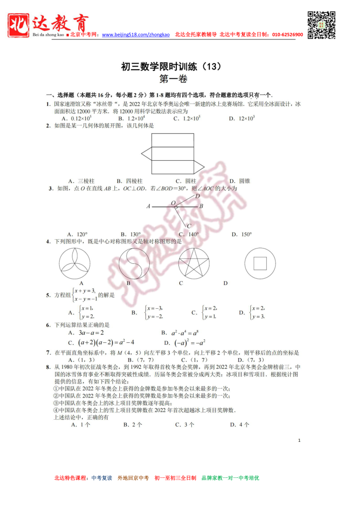 北京人大附中朝阳学校202206初三下数学限时训练13(高清版无答案)。admw360中考复读学校教研组收集整理,分享给大家。