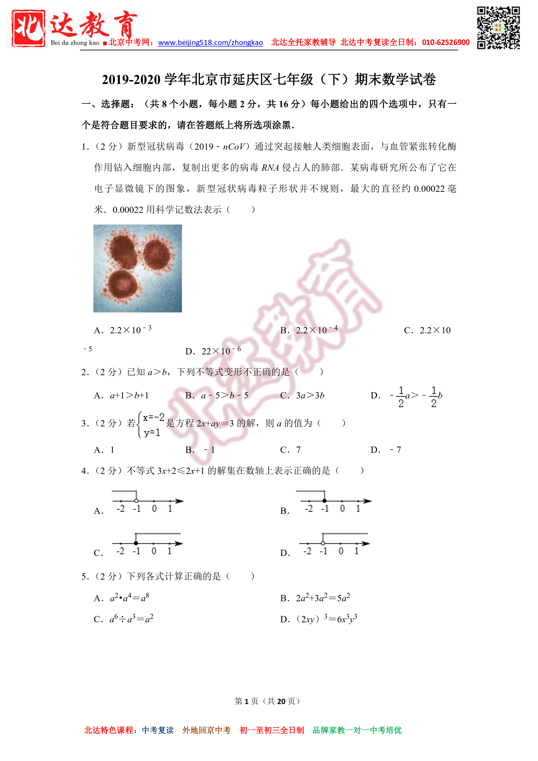 北京市延庆区2019-2020学年七年级(下)期末数学试卷及解析