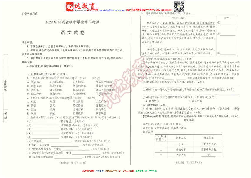 陕西2022中考各科真题含答案(全科高清版)。admw360中考复读学校教研组收集整理,分享给大家。